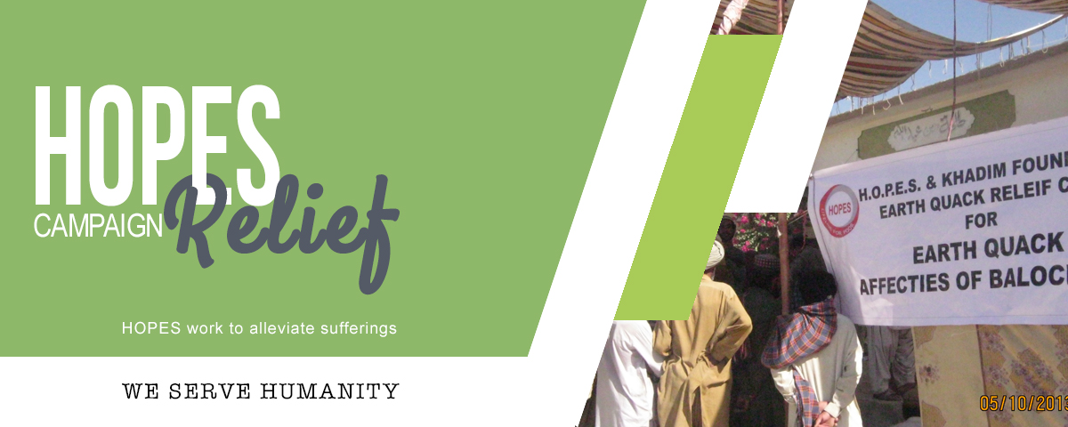 HOPES stands in complete solidarity with all the victims and has never hesitated to provide its health care services to those who need it the most. HOPES played a significant role to help rehabilitate the victims of the 2005 Earthquake and 2011-2012 floods in Sindh including the earthquake of Baluchistan last year. In addition to providing the victims with daily necessities of life, HOPES also built up to 200 houses, a Mosque and a school in district Dadu in 2012.